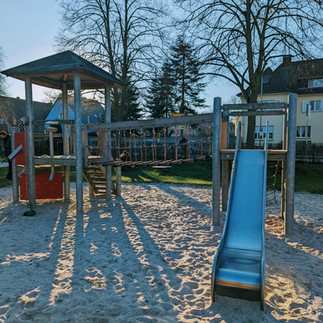 - es gibt zwei Zugänge zum Spielplatz, die nicht mit einem Törchen gesichert sind - dabei liegt der Spielplatz direkt an einer vielbefahrenen Straße!