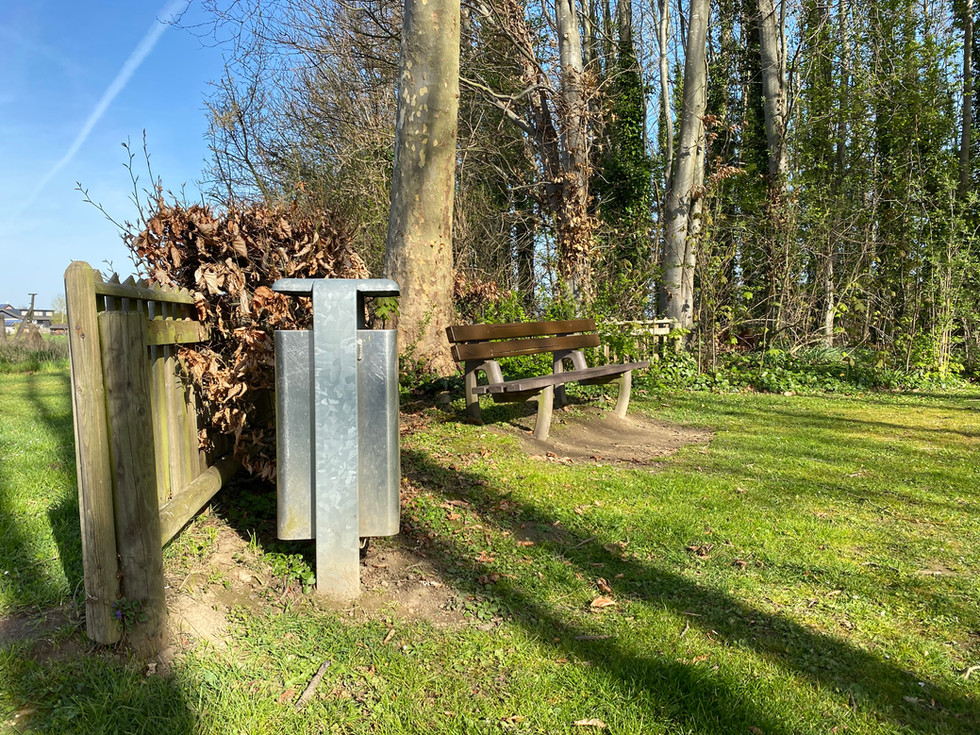 + versteckt in einem kleinen Wäldchen direkt am Feldweg / ganz ruhig gelegen, man kann die Vögel zwitschern hören und die vielen Bäume spenden im Sommer Schatten 🌳