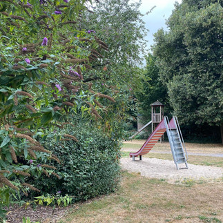 + grüne Oase mit vielen Bäumen, Hecken zum Verstecken und kleinen Geheim-Wegen hinter Büschen